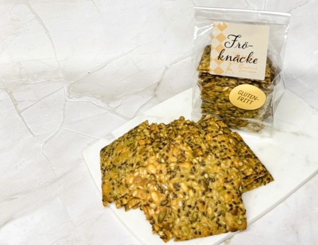 Vårt spröda knäckebröd bakat på rågmjöl och toppat med en god fröblandning och havssalt.